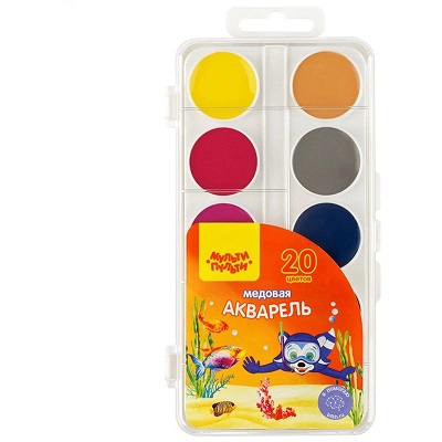 Акварель Мульти-Пульти "Енот в Красном море", медовая, 20 цветов, без кисти, пластик, европодвес