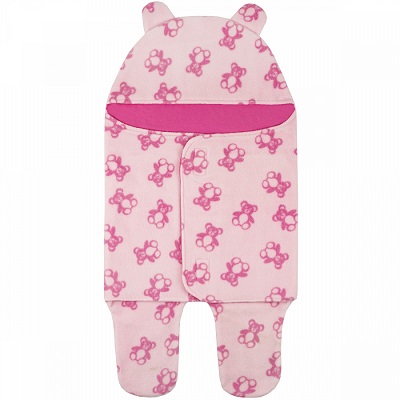 Комбинезон-конверт для новорожденного с капюшоном, с запахом на липучках, принт - мишки, флис. Размер 36-40.