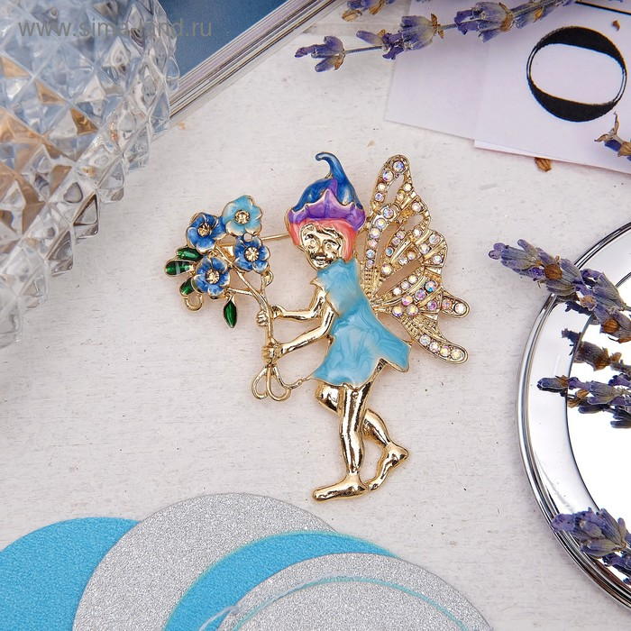 Брошь "Эльф", цветная в золоте 3443508