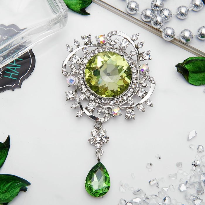 Брошь "Императрица" круг, цвет бело-зеленый в серебре 3714740 Подробнее