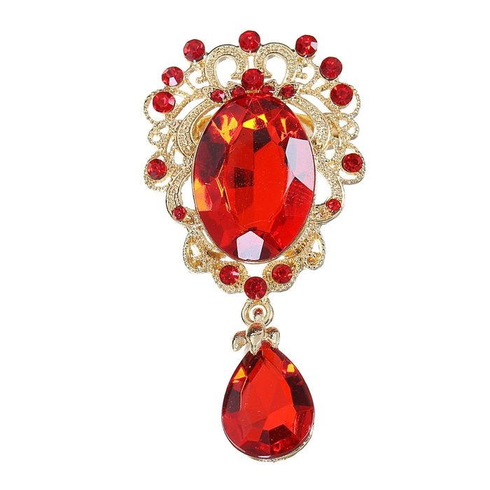 Брошь "Овал" с каплей, цвет красный в золоте 1489396 Подробнее