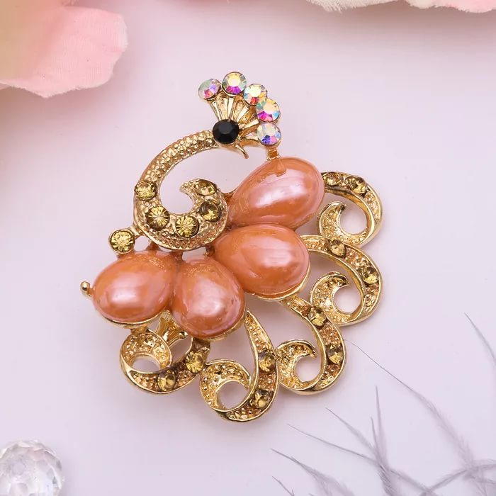 Брошь "Павлин" с радужным хвостом, цвет персиковый в золоте 2521833 Подробнее