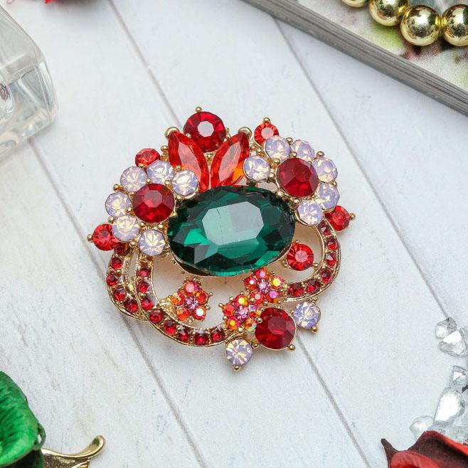 Брошь "Соцветие" дуэт, цветная в золоте 3723781 Подробнее