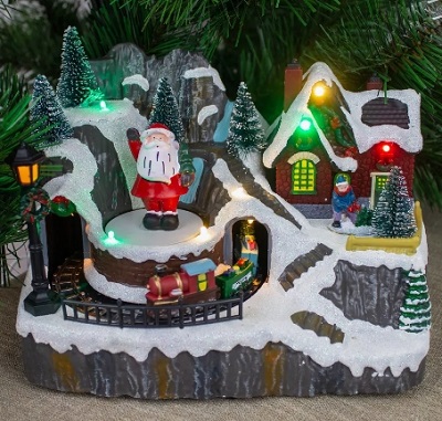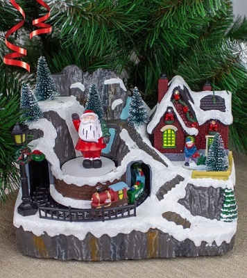 Новогодняя музыкальная композиция Зимний двор с подсветкой и движением поезда.