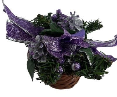 УКРАШЕНИЕ КОРЗИНКА 13СМ С ЦВЕТАМИ И ШИШКАМИ