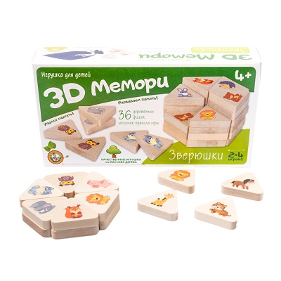 Игра деревянная 3D Мемори "Зверюшки" арт.02905 Подробнее