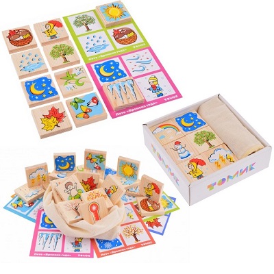 Деревянное лото "Времена года" - это отличная настольная развивающая игра, в которую можно играть всей семьей. Лото поможет детям в игровой форме узнать о временах года. Набор развивает память, внимательность, мелкую моторику. Комплект игры включает в себя 24 фишки из цельного дерева с яркими рисунками, 6 карточек и мешочек. В лото играют от 2 до 6 человек. Деревянные фишки с картинками складываются в мешочек, затем ведущий вынимает их по одной и говорит название картинки. Фишку берет тот, у кого на карточке есть эта картинка, и закрывает ею соответствующую клеточку на карточке. Выигрывает тот, кто первым полностью закроет все клеточки на карточке.
