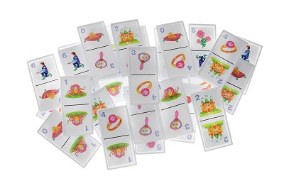 Домино «для девочек» понравится малышкам, т.к. на фишках изображены зеркальце, цветочки, замки, принцы и т.д. С помощью этого набора можно не только играть в домино, но и сочинить настоящую сказку.