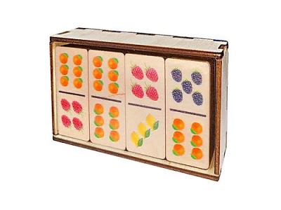 Фишки домино выполнены из экологически чистой березовой фанеры и хранятся в коробочке из древесного материала.
