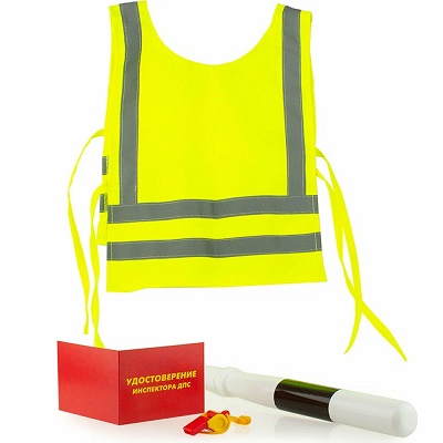 Комплектация: жилет - 1 шт, свисток - 1 шт, жезл - 1 шт, удостоверение - 1 шт.