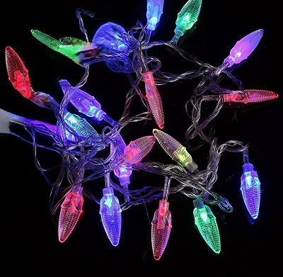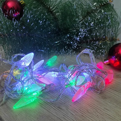 Скоро насЭлектрогирлянда с фигурными наконечниками LED лампами (светодиодами) для внутренних помещений. Светодиоды потребляют малое количество электроэнергии, но при этом обладают большим коэффициентом свечения, чистым светом и прочностью. Во время работы светодиоды практически не нагреваются. Внутри каждого провода находится медная проволока.