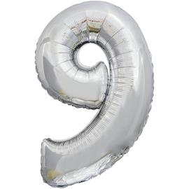 Фольгированный шар (34''/86 см) Цифра, 9 ЭКО, Серебро №21549
