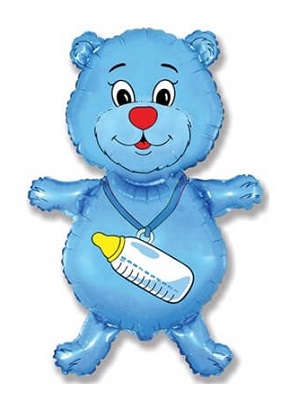 Шар (37''/94 см) Фигура, Медвежонок-мальчик, Голубой, 1 шт.