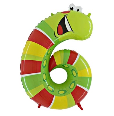 Шар (40''/102 см) Цифра, 6 Гусеница, 1 шт. Подробнее
