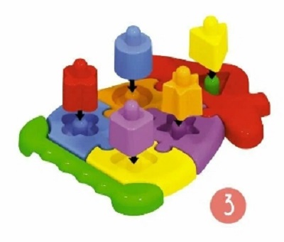 Весело играя малыш научится поэтапно строить "Домик", собирая пазл из ярких “кирпичиков” и крыши.