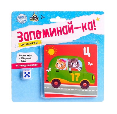 Настольная игра «Запоминай-ка» создана для маленьких умников и будущих гениев старше 3 лет. В ней может принимать участие от 2 до 4 участников. Она отлично тренирует внимание и память и станет отличным тренажером при подготовке к школе!