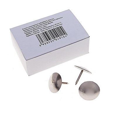 Кнопки канцелярские DOLCE COSTO никелированные, диаметр шляпки 12 мм. Поставляются в белой картонной коробке по 50 штук.