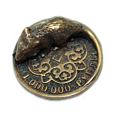 Данное металлическое украшение "Мышь на милионе рублей" — это не просто аксессуар, а небольшой талисман, притягивающий не только удачу, но и богатство. Изделие имеет уникальный дизайн и гравировку на внешней стороне. За счёт своих компактных размеров оно легко поместится в кошелёк. Если повязать на деталь красную ниточку, влияние талисмана усилится, и хорошие новости не заставят себя ждать.