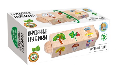 Деревянные кубики на оси «Времена года» для детей от 3-х лет изготавливаются из экологического материала – массива дерева. Изображения наносятся на кубик с применением технологии прямой печати, что обеспечивает износостойкость игрушки.