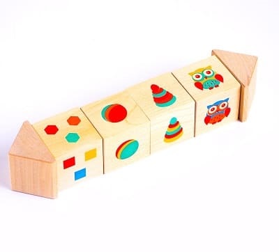 Развивающая игрушка из дерева для детей от 3-х лет. Кубики вращаются на оси. Игра с кубиками поможет ребенку развить логику, образное мышление и мелкую моторику