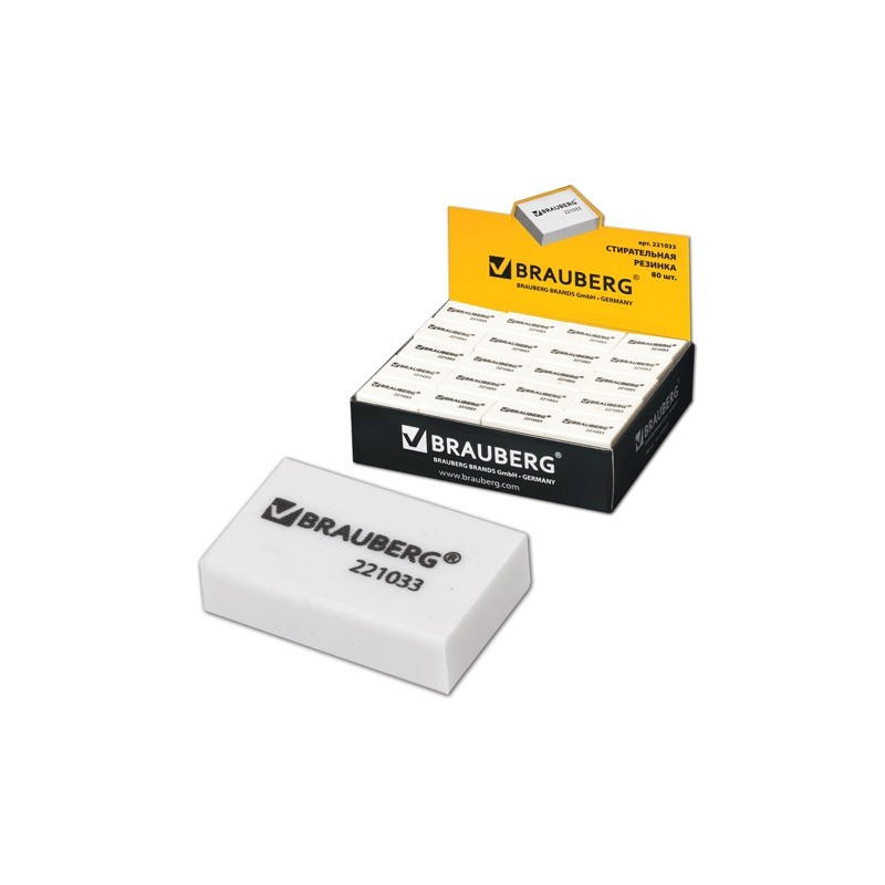Резинка стирательная BRAUBERG, 26х17х7мм, цвет белый, в карт. дисплее, 221033 Подробнее