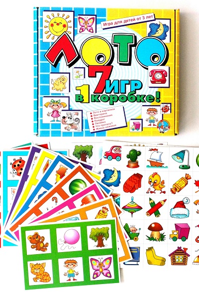 Детское многовариантное лото «7 в 1» позволяет играть по разным правилам с одним и тем же набором карточек. В комплект входят: 10 картонных полей-основ, 60 картинок с забавными изображениями животных, растений, предметов. Складывание фрагментов комплекта в правильном порядке и обоснование выбора развивают ассоциативное мышление и речь дошкольников. Малыши от 3 до 5 лет с удовольствием освоят 7 различных дидактических игр, в том числе: «Воспоминания», «Лото в картинках», «Что пропало» и другие. Инструкция с правилами напечатана на коробке. Все элементы набора произведены из экологически чистого материала — гипоаллергенного ламинированного картона.