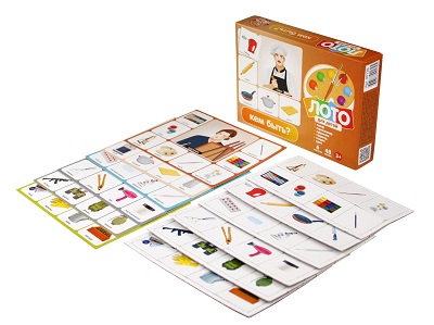 Малое детское развивающее картонное лото «Кем быть?» состоит из:
