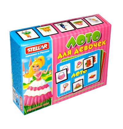 Лото «Для девочек» понравится малышкам, т.к. на фишках изображены зеркальце, цветочки, замки, принцы и т.д.