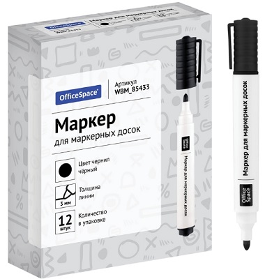 Маркер для белых досок OfficeSpace черный, пулевидный, 3мм Подробнее