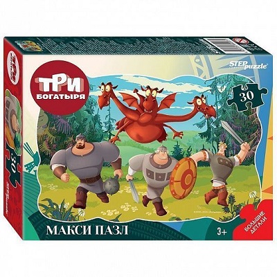 Контурный макси пазл «Три богатыря» c героями одноименного мультфильма. Фигурный пазл с крупными деталями эргономичен для детской руки. Развивает внимание и память. Тренирует мелкую моторику. Характеристики пазла: крупные детали пазла ≈ 5×4,5 см; размер собранного изображения – 27х18 см; материал – картон; качественное изображение.