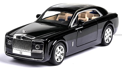 Металлическая модель машины Rolls-Royce масштаба 1:24 имеет световые и звуковые эффекты. При нажатии на переднюю ось машинки загораются передние и задние фары, раздается звук работающего мотора. У машинки открываются все двери, капот и багажник. Детализированный салон.Машинка благодаря инерционному механизму, может ездить самостоятельно. Принцип действия "прижать, откатить, отпустить" знает любой ребенок. Такая игрушка поможет ребенку развить воображение, координацию, тактильные ощущения и мелкую моторику рук. Масштабная модель Rolls-Royce станет отличным подарком для детей и даже для автолюбителей, и займет достойное место в коллекции.