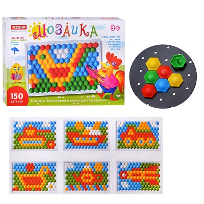 • Традиционная мозаика знакома всем из детства. Даже самые активные малыши, собирая картинку из мелких деталей, могут надолго увлечься этим занятием.
