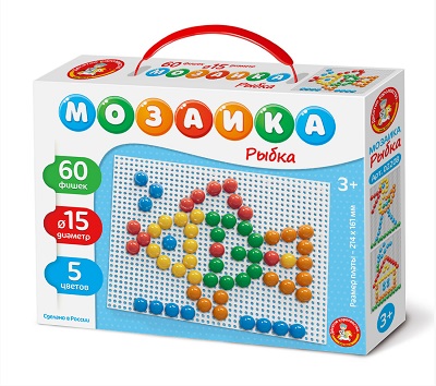 Потренируйте творческую фантазию, аккуратность и точность пальчикового захвата вашего малыша вместе с мозаикой «Рыбка» из 60 деталей!