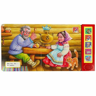 Ребёнок с удовольствием будет листать плотные страницы, рассматривать яркие картинки, вместе с родителями читать интересную сказку и, конечно, нажимать на кнопки и слушать весёлые песенки. Малыш легко освоит включение звука: по нажатию на кнопку песенка включится, при втором нажатии выключится. Благодаря компактному размеру книгу удобно взять с собой в дорогу.