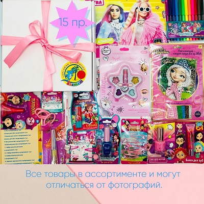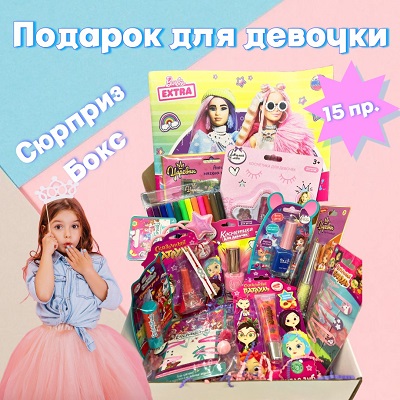Подарочный набор "Сюрприз бокс" для девочки - это идеальный подарок для девочки на день рождения, 8 марта, 1 сентября, а так же на любой праздник. Сюрприз бокс - это комплект разных подарков для досуга вашего ребенка. В данном комплекте содержится 15 интересных и увлекательных предметов, начиная от лака для ногтей и заканчивая альбомом для рисования. Подарочный набор содержит предметы с разной тематикой и цветовой гаммой. В комплект входит: альбом для рисования, лак для ногтей - 3шт, фломастеры, аппликация-мягкая мозаика, блеск для губ - 2шт, резинки для волос, бальзам для губ, набор заколок для волос - 2шт, набор декоративной косметики, браслет красная нить, браслет разноцветный . Все предметы в сюрприз боксе в ассортименте и могут отличаться от фотографии, но всегда заменяются аналогичными. Подарочный набор будет интересен для любого ребенка, так как это не просто подарок, а настоящий сюрприз. Ваш юная леди будет доставать каждый предмет, не догадываясь, что дальше попадется.