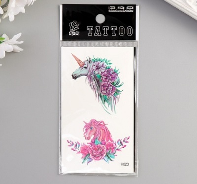 Татуировка на тело цветная "Единороги и пионы" 10,5х6 см 5084758 Подробнее