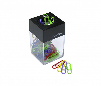 Диспенсер вертикальный, прямоугольной формы с магнитом. Выполнен из черного и прозрачного пластика. В комплект входят 50 цветных скрепок, длина скрепок 28 мм. Диспенсер помогает поддерживать порядок на рабочем месте.