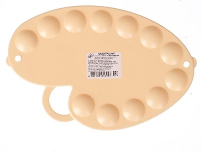 Палитра - необходимое приспособление для занятий живописью. Предназначена для организации и смешивания цветов. Изготовлена из прочной пластмассы. Хорошо подходит для работы с масляной краской.