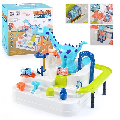 Развивающий трек с динозаврами - интересная, весёлая игра, которая надолго займёт внимание ребёнка.Суть игры заключается в следующем: нажатие кнопок, повороты и смещение рычагов приводят в действие механизмы, двигающие детали платформы, благодаря чему препятствия на пути паровозика становятся свободной дорогой. Таким образом шаг за шагом ребёнок помогает паровозикам пройти весь маршрут. Игрушечные паровозики входят в комплект.