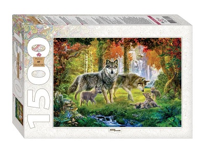 Пазл «Волки» состоит из 1500 деталей. С незапамятных времен волки нередко вызывали в человеке чувство восхищения, в том числе благодаря своему характеру. Самцы всегда защищают самок и молодняк, если тем угрожает опасность. На картинке четверо волчат резвятся на лесной полянке, а взрослые охраняют их спокойствие.