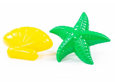 Набор красочных формочек (морская звезда, ракушка) можно использовать для домашних игр с кинетическим песком или в песочнице.