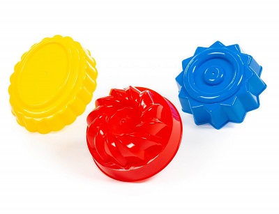 Комплект из трёх формочек в виде пирожных позволит малышам старше 2 лет открыть свою кондитерскую на детской площадке.