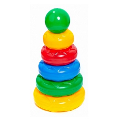 Высота пирамидки в собранном виде – 32,5 см. Цвета комплектующих могут отличаться.