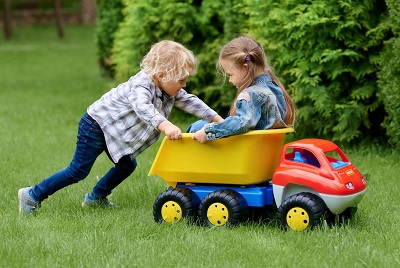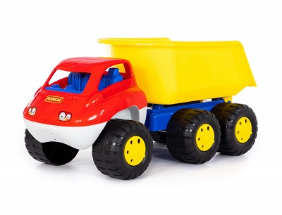 Гигантский самосвал - это мощный крепкий пластик, металлические крепления, удобство обращения, надежность и потрясающие объемы. В таком самосвале можно возить не только песок или игрушки, но и ребенка! Ребенок может садиться в кузов, отталкиваться ножками и ехать, держась за ручку на кабине самосвала.