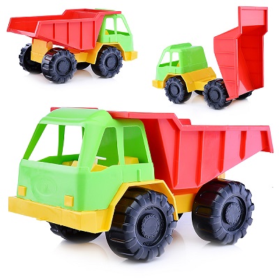 Игрушечный самосвал «Белаз» с опрокидывающимся кузовом, в котором можно перевозить песок или игрушки. В кабину можно посадить любую фигурку, подходящую по размеру.