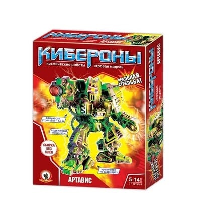 Кибероны – это серия сборных моделей боевых киборгов. Киберон Артавис – супер-воин с боевым оружием, стреляющим пластмассовыми снарядами. Дальнобойность стрельбы – 1,5 метра. Отличительная особенность робота – суперскоростная диск-пила для поражения соперников. В набор входят детали робота, пластиковые снаряды, подробная инструкция по сборке. Готовая фигурка робота подвижна. Собранную фигурку робота можно раскрасить любыми модельными красками.
