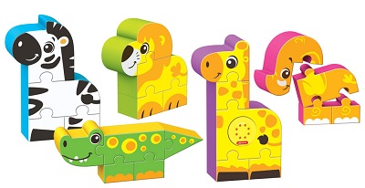 Настоящие 3D-пазлы для малышей – крупные, мягкие, с музыкальной кнопочкой и наклейками! В игровом наборе «Собери зоопарк» ребенок найдет 22 детали, из которых он сможет сам сделать 5 игрушек-зверюшек: жирафа, льва, зебру, крокодила и слона. Если приклеить на детали наклейки из набора – получатся двусторонние игрушки, с которыми можно придумать множество интересных сюжетных игр. А под музыку играть еще интереснее! Нажимая на кнопочку, малыш послушает 5 веселых песенок про зверят.