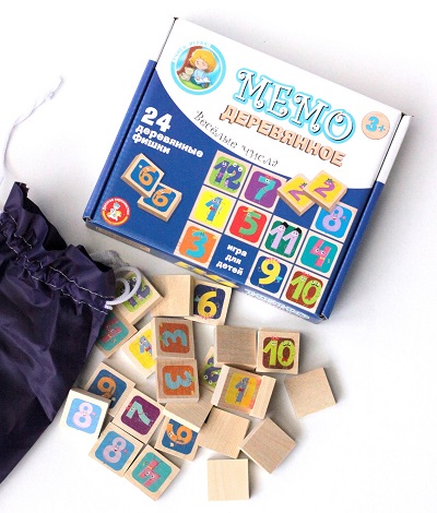 Тренируйте память с деревянной игрой «Мемо. Весёлые числа»! Открывайте фишки и находите пары среди забавно проиллюстрированных чисел от 1 до 12.