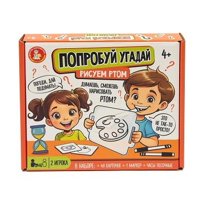 Развивающая настольная игра «Попробуй угадай» Рисуем ртом - игра, где нужно рисовать, держа фломастер в зубах. Экран для рисования многоразовый, а маркеры легко стираются. Стань чемпионом по рисованию ртом!