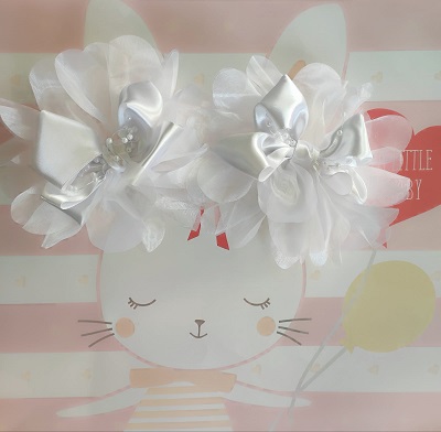 Белый бант на резинке. Ничто не может с такой легкостью и ненавязчивостью привить девочке чувство стиля, как очаровательные банты в прическе. Добавьте в любой образ своей малышки банты и образ автоматически наполнится нотками торжественности с привкусом воздушной непосредственности. В ассортименте.